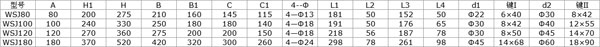 WSJ蝸輪減速機外形尺寸、安裝尺寸及裝配型式