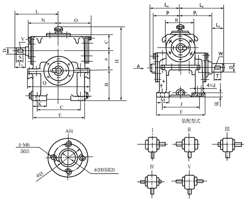 WS型圓柱蝸桿減速器(80~120)安裝尺寸
